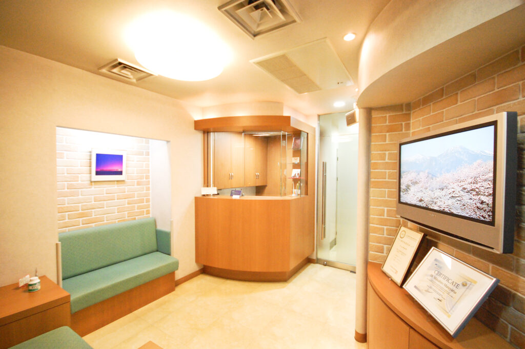 治療前に一呼吸おけるように落ち着いた雰囲気をテーマにしています。 時間予約制ですので、あまりお待たせすることはありません。 大画面モニターでリラックスできる環境映像を放送しております。
