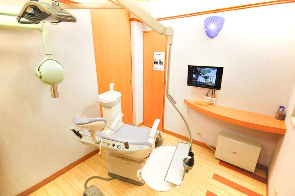 オレンジを基調にした太陽の部屋は生命のエネルギーと細胞の活性化を意味しています。 各診療室は全て個室となっていますので、患者様のプライバシーは完全に保たれています。 壁内には鉛板が埋め込まれ、話声が漏れることもありませんし、治療を受けている姿を見られることもありません。 普段は環境映像の流れているテレビモニターでは、必要に応じて口の中の状態を映し出して治療の説明をいたします。 レントゲンも装備されていますので、撮影のために部屋を移動するわずらわしさもありません。